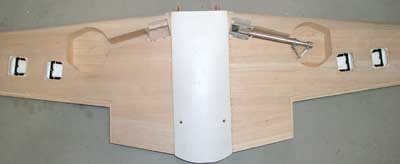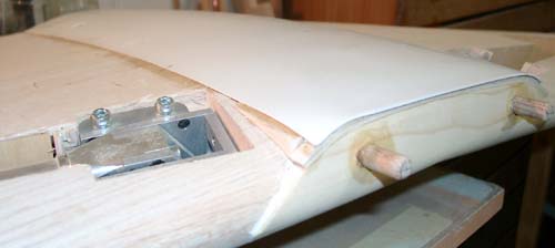 Die fertigen Schraubenlöcher in der Tragfläche. Zwei Nylonschrauben sind hier provisorisch