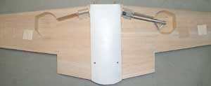 habe ich abgesägt. Der Balsaklotz wird oben in das Leitwerk eingesetzt um es wieder zu verschließen.